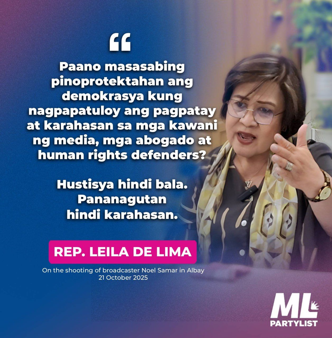 Paano masasabing pinoprotektahan ang demokrasya kung nagpapatuloy ang pagpatay at karahasan sa mga kawani ng media, mga abogado at human rights defenders?